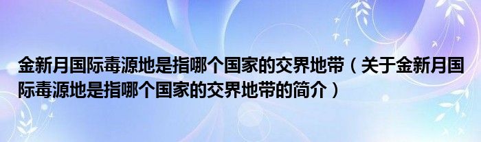 本文關于金新月國際毒源地是指哪個國家的交界地帶的簡介就講解完畢,希望對大家有所幫助。