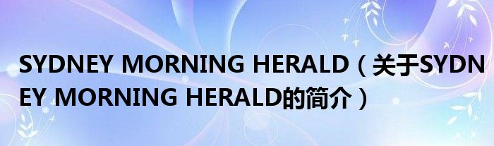 大家好,SYDNEY MORNING HERALD,關于SYDNEY MORNING HERALD的簡介很多人還不知道,現在讓我們一起來看看吧!