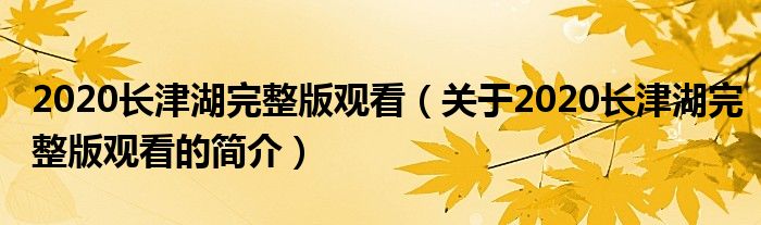 本文關于2020長津湖完整版觀看的簡介就講解完畢,希望對大家有所幫助。