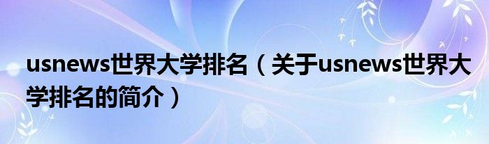 本文關(guān)于usnews世界大學(xué)排名的簡介就講解完畢,希望對大家有所幫助。