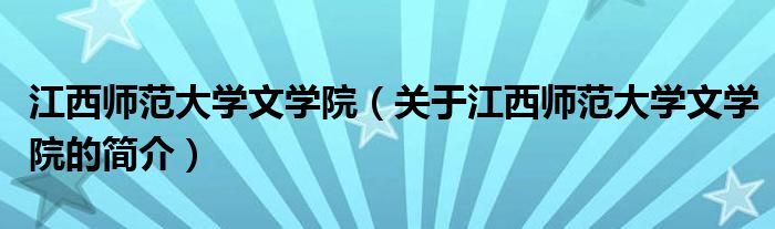 大家好,江西師范大學(xué)文學(xué)院,關(guān)于江西師范大學(xué)文學(xué)院的簡介很多人還不知道,現(xiàn)在讓我們一起來看看吧!
