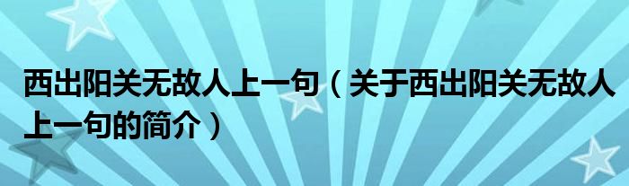本文關(guān)于西出陽關(guān)無故人上一句的簡介就講解完畢,希望對大家有所幫助。