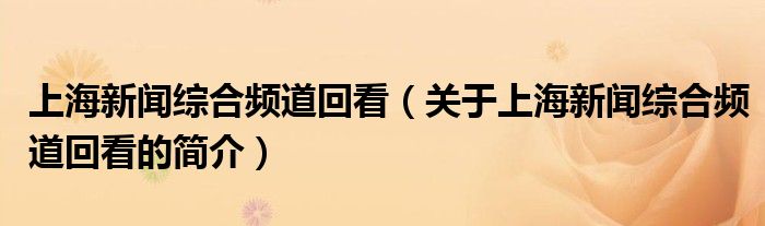 大家好,上海新聞綜合頻道回看,關于上海新聞綜合頻道回看的簡介很多人還不知道,現在讓我們一起來看看吧!