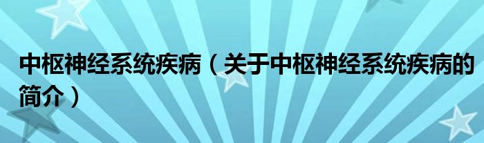 大家好,中樞神經系統疾病,關于中樞神經系統疾病的簡介很多人還不知道,現在讓我們一起來看看吧!