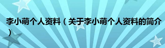 大家好,李小萌個(gè)人資料,關(guān)于李小萌個(gè)人資料的簡(jiǎn)介很多人還不知道,現(xiàn)在讓我們一起來看看吧!