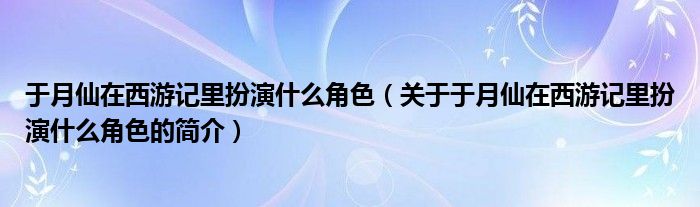 本文關于于月仙在西游記里扮演什么角色的簡介就講解完畢,希望對大家有所幫助。