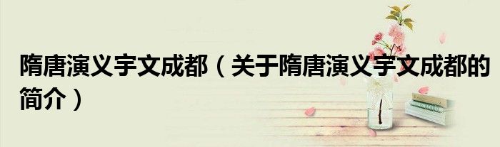 本文關于隋唐演義宇文成都的簡介就講解完畢,希望對大家有所幫助。