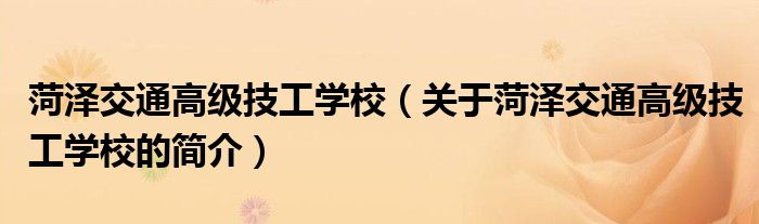 本文關于菏澤交通高級技工學校的簡介就講解完畢,希望對大家有所幫助。