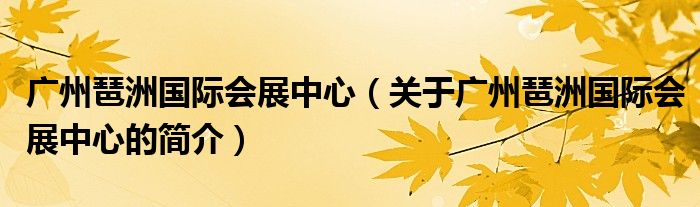 本文關于廣州琶洲國際會展中心的簡介就講解完畢,希望對大家有所幫助。