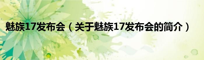 大家好,魅族17發(fā)布會,關(guān)于魅族17發(fā)布會的簡介很多人還不知道,現(xiàn)在讓我們一起來看看吧!