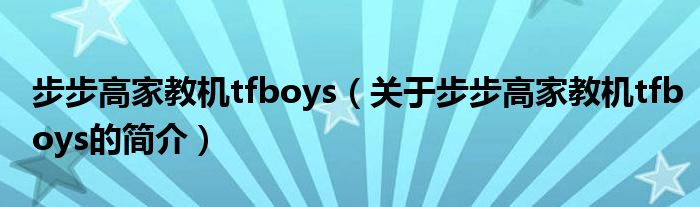 本文關于步步高家教機tfboys的簡介就講解完畢,希望對大家有所幫助。