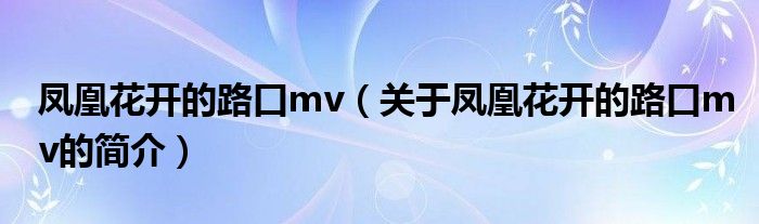 本文關于鳳凰花開的路口mv的簡介就講解完畢,希望對大家有所幫助。