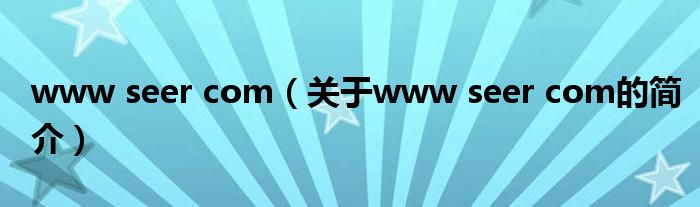 大家好,www seer com,關于www seer com的簡介很多人還不知道,現在讓我們一起來看看吧!