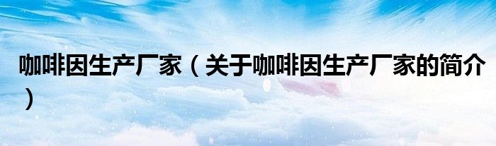 本文關于咖啡因生產廠家的簡介就講解完畢,希望對大家有所幫助。