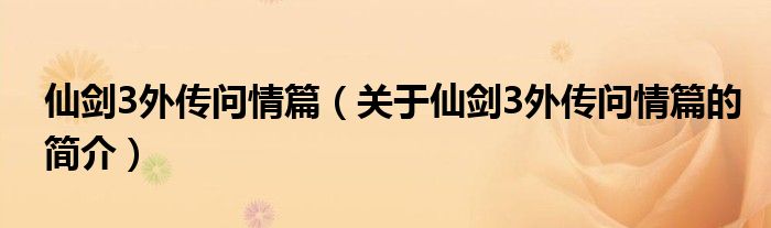 本文關于仙劍3外傳問情篇的簡介就講解完畢,希望對大家有所幫助。