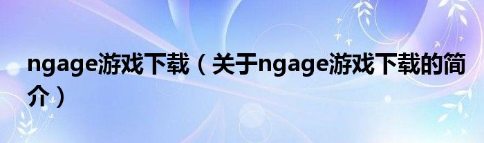 本文關于ngage游戲下載的簡介就講解完畢,希望對大家有所幫助。