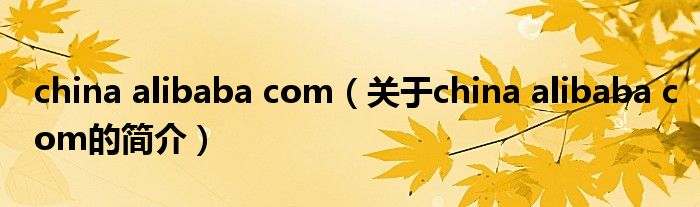 本文關(guān)于china alibaba com的簡(jiǎn)介就講解完畢,希望對(duì)大家有所幫助。