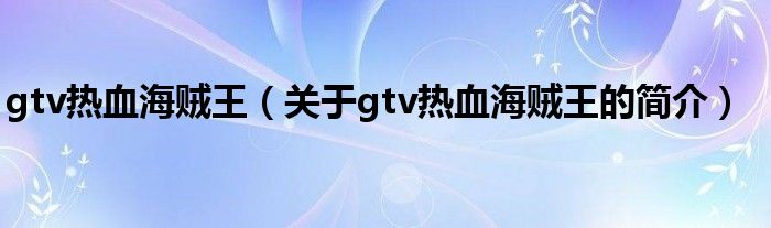 大家好,gtv熱血海賊王,關于gtv熱血海賊王的簡介很多人還不知道,現在讓我們一起來看看吧!