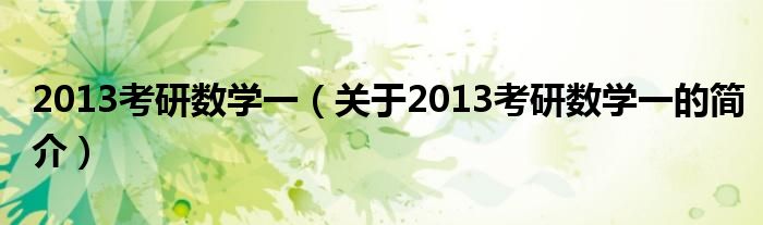 大家好,2013考研數學一,關于2013考研數學一的簡介很多人還不知道,現在讓我們一起來看看吧!