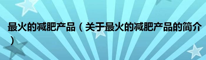 本文關(guān)于最火的減肥產(chǎn)品的簡介就講解完畢,希望對大家有所幫助。