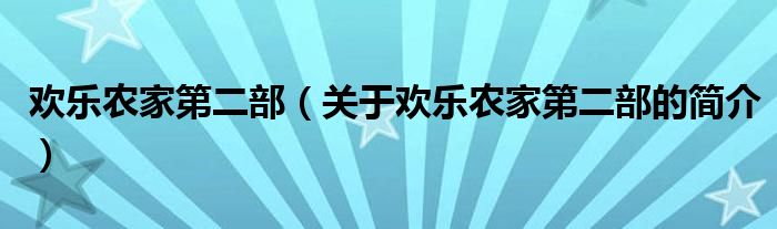 本文關(guān)于歡樂農(nóng)家第二部的簡(jiǎn)介就講解完畢,希望對(duì)大家有所幫助。