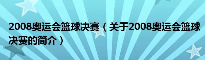 本文關于2008奧運會籃球決賽的簡介就講解完畢,希望對大家有所幫助。
