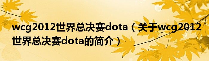 本文關于wcg2012世界總決賽dota的簡介就講解完畢,希望對大家有所幫助。