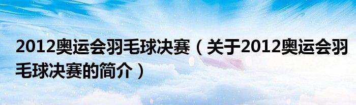 大家好,2012奧運會羽毛球決賽,關于2012奧運會羽毛球決賽的簡介很多人還不知道,現在讓我們一起來看看吧!