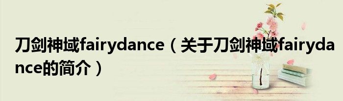 本文關于刀劍神域fairydance的簡介就講解完畢,希望對大家有所幫助。