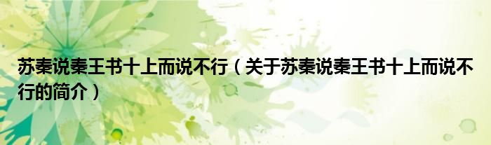 本文關于蘇秦說秦王書十上而說不行的簡介就講解完畢,希望對大家有所幫助。