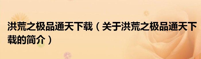 本文關于洪荒之極品通天下載的簡介就講解完畢,希望對大家有所幫助。