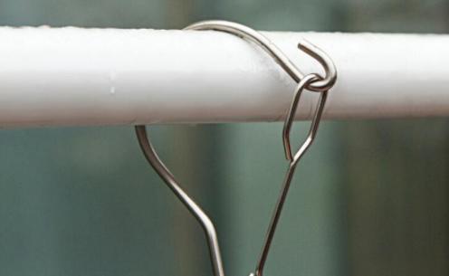 如果一架是鐵質的,可以自己使用鉗子,把衣架掛鉤處向里邊掰的更彎一點,直到將掛鉤處擺成一個圓圈,這能夠保證在大的風都不會將一架吹落,而且學的時候也非常的方便,只需要將衣架轉向和繩子一致的方向即可,如果覺得表達的不夠清楚,可以看下圖所示。