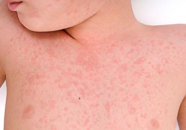 兒童最開始出現皮疹的地方是額頭和耳朵后面,最開始的皮疹是2~3毫米的紅色斑點,并且呈凸起狀,隨著病情的發展,這些皮疹會逐漸向全身開始擴散,在擴散的同時斑點也會越長越大,到最后斑點全部都連在一起,到了第6天的時候,皮膚表面的斑疹開始逐漸消退,在一般情況下,到了第7天,所有的癥狀都會消失。
