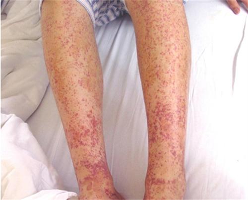 癥狀較為嚴重的患者,可能會出現發熱,局部疼痛,尿液異常,全身不適等癥狀,當出現尿液異常,首先要考慮是不是腎病型紫癜,出現這些癥狀,要及時的到醫院進行相關的檢查,確診病因進行對癥治療,如果是因藥物或食物產生的過敏性紫癜,一般建議采用抗過敏藥物和抗組胺藥進行治療,關節型的癥狀可以采用注射糖皮質激素的方法,治療的同時,患者需口服維生素c維生素e和復方蘆丁片這些能夠降低毛細血管通透性的藥物。
