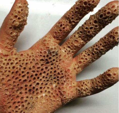2.圖形本身引起的恐懼:緊密的孔洞圖形或者是非常密集的物體畫面,會使人產生這種本能的視覺能量,令人出現一些恐懼的反應,不管在之前是否有遇到過類似不愉快的經歷,但是圖片本身就令人感覺非常的敏感,容易出現強烈的反應,發生密集恐懼癥。