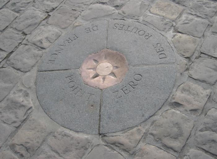 這是一個小青銅板密封廣場的中心在巴黎圣母院讓人想起前:這里是“法國的零條道路”,各種渠道(國家,省和超過百萬公里市政當局包括近萬公里的國家公路網。1739年4月22日的一封皇室信件正式化了這個“零點”,代表了羅盤。它被一塊石板包圍,分為四個部分。我們所知道的牌匾,被認為是首都的一個好奇心,于1924年10月1日落成。
