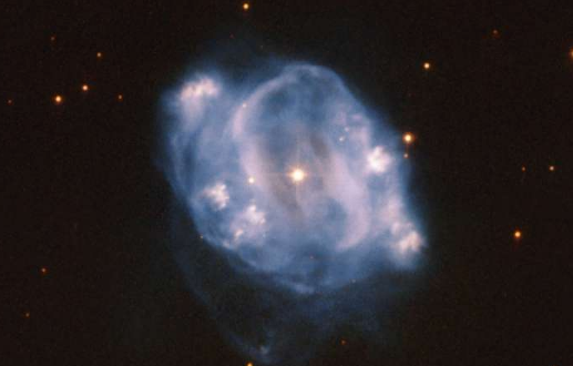 在恒星的紅巨星階段結束時,這些力量變得不平衡。如果沒有足夠的能量通過融合產生,恒星的核心就會自行坍縮,而表面層則會向外彈出。在那之后,我們在這里看到的是恒星的剩余部分:圍繞著一顆白矮星的發光外層,紅色巨星的核心殘余。
