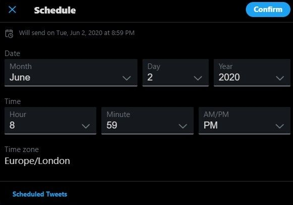 外媒在幾周前報道了Twitter開測的定時發布和草稿功能,今天,該公司正式宣布了PWA客戶端的新特性。如最初報道的那樣,定時發布可設置最長18個月內的日期。彈窗中還可選擇特定的時區、以及預定推特的列表,便于用戶制定和管理多條推文的發布計劃。