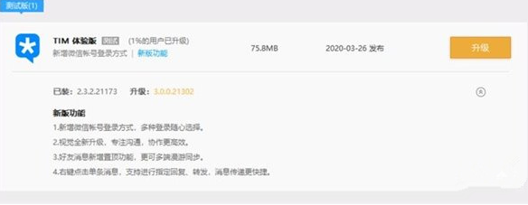 今天騰訊軟件管理中提示PC版TIM可升級至3.0測試版本,主要新增了微信登錄方式,以及更新了軟件UI樣式。