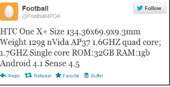 隨著HTC One X +的新詳細信息在線發布,一連串的HTC急速泄漏今天仍在繼續。據XDA開發人員 @ Football4PDA稱,即將推出的設備將運行Android 4.1 Jelly Bean,并具有主頻為1.6GHz的四核Tegra 3處理器以及32GB內部存儲。該設備到貨時將達到134.36 x 69.9 x 9.3的重量,重129克,希望在接下來的幾周內。