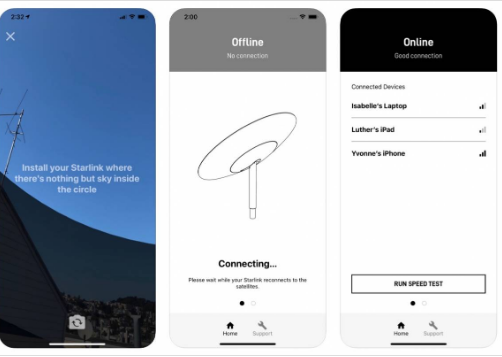 適用于iOS和Android的應(yīng)用程序用于設(shè)置系統(tǒng),配置后即可自動(dòng)調(diào)整。終端天線可以沿著網(wǎng)狀衛(wèi)星穿過天空的路徑,以確保最快和最穩(wěn)定的連接。