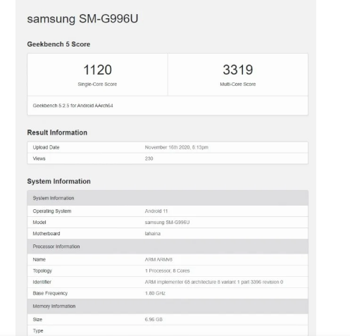現在,距離智能手機正式發售還有幾天時間,由高通Snapdragon 875芯片組支持的三星Galaxy S21已出現在基準測試平臺Geekbench上。