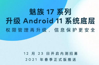 根據Flyme微博官方賬號的帖子,魅族將于12月23日開放魅族17系列Android 11封閉Beta計劃的注冊。盡管該公司沒有提及Beta版本何時開始交付,但它確實表明了穩定版本。將于2021年春季發生。