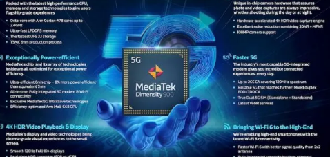 該芯片組配備一個主頻為 3GHz 的 ARM Cortex-A78 Ultra Core、三個主頻為 2.6GHz 的 ARM Cortex-A78 超級內核和四個主頻為 2GHz 的 ARM Cortex-A55 高效內核。這種原始能力使手機制造商能夠提供從一流的游戲體驗到出色的日常性能的一切。在聯發(fā)科Dimensity 1100,Dimensity 1000+和Dimensity 900還設計提供最佳的智能手機5G給消費者類似的產品。