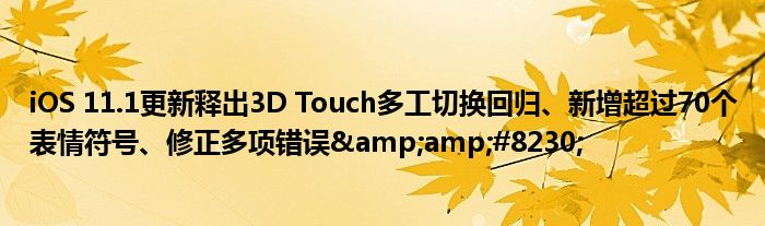Apple今天釋出了iOS 11以來第一個中型更新「iOS 11.1」,大家最期望的3D Touch多工切換也在這個版本中回歸了,除此之外還新增了超過70個的新表情符號,修正了Apple Watch上App圖示無法顯示、部分照片可能會模糊顯示….等多項問題。