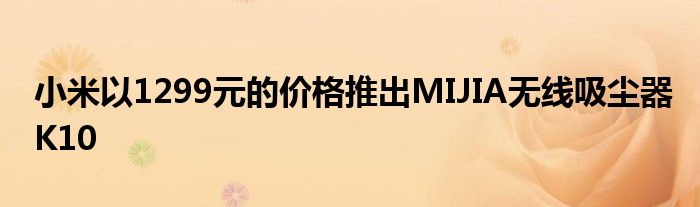 小米已正式推出MIJIA無線吸塵器K10。小米擁有許多MIJIA品牌的吸塵器以及其他生態系統品牌,如Roidmi,Roborock,Viomi等。MIJIA無線吸塵器K10目前已通過小米Youpin在以1,299元(?192美元)的價格預訂。網站。MIJIA無線吸塵器K10