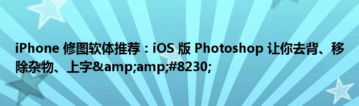 iPhone Photoshop 系列介紹iPhone 的Photoshop是分成三個獨立的app,有Mix, Fix 和Express 三種。Mix是負責圖層疊加和去背,Fix 則有移除雜物、修復、液化和光線調整功能,Express 可以做圖片拼貼、色調調整等照片細項編輯,三套一起下載可以發揮較大功能與方便性。