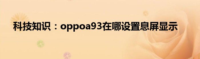 如今使用IT數碼設備的小伙伴們是越來越多了,那么IT數碼設備當中是有很多小技巧的,這些技巧很多小伙伴一般都是不知道如何來實用的,就好比最近就有很多小伙伴們想要知道oppoa93在哪設置息屏顯示,那么既然現在大家對于oppoa93在哪設置息屏顯示都感興趣,小編就來給大家分享下關于oppoa93在哪設置息屏顯示的一些信息吧。