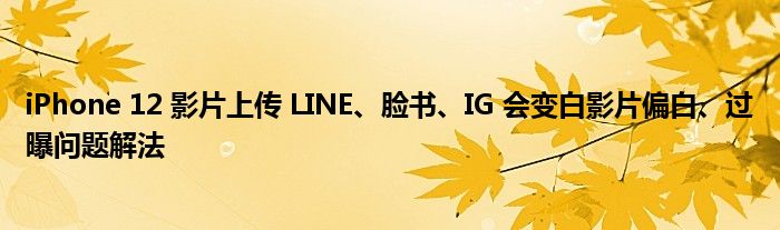 iPhone 12 / 12 Pro 上傳影片變白、過曝問題這個問題(應該還不算災情)發生在 iPhone 12 和 iPhone 12 Pro 所拍攝的「影片」上;當使用者將影片上傳 LINE、臉書或其他網站,會發生影片顏色變得白白的,好像套了一層濾鏡一樣的狀況。