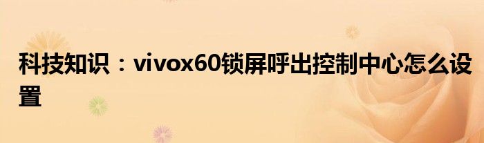 如今使用IT數碼設備的小伙伴們是越來越多了,那么IT數碼設備當中是有很多小技巧的,這些技巧很多小伙伴一般都是不知道如何來實用的,就好比最近就有很多小伙伴們想要知道vivox60鎖屏呼出控制中心怎么設置,那么既然現在大家對于vivox60鎖屏呼出控制中心怎么設置都感興趣,小編就來給大家分享下關于vivox60鎖屏呼出控制中心怎么設置的一些信息吧。